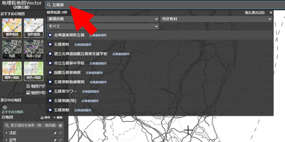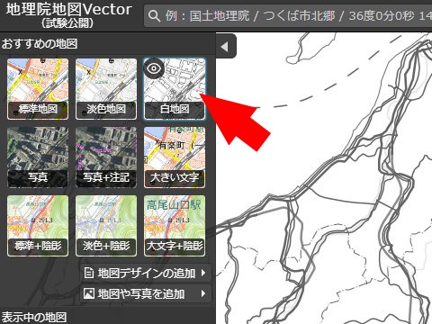 まずは、ブラウザで地理院地図Vectorを開きます。