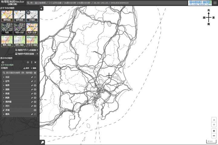 地理院地図Vectorは、日本全国の任意の範囲を(最大拡大率の制限はありますが)自由に拡大縮小して地図を作成することができる、国土地理院のサービスです。