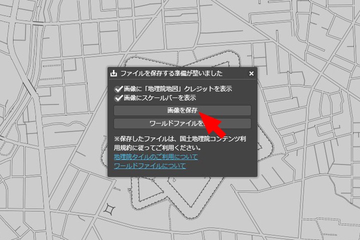 最後に、出来上がった地図を画像として保存(ダウンロード)します。