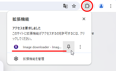 すると、ブラウザ右上のジグソーパズルのピースのようなアイコンのメニューの中に拡張機能が表示されます。