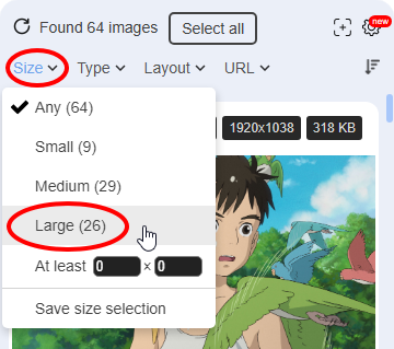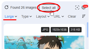 これで、大きなサイズの画像のみがダウンロード対象となりますので、「Select all」というボタンをクリックして、ダウンロード対象を確定させて下さい。
