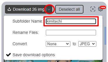 サブフォルダ名を入力できたら「Download ?? img」というボタンをクリックしてダウンロードを開始して下さい。