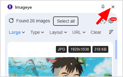 欲しい作品の場面写真をダウンロードできたら、Image Downloaderを終了します。